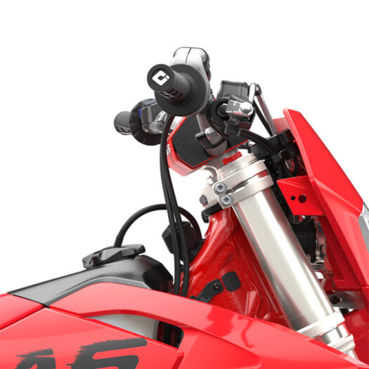 Pro zjednodušení spouštění a zastavování jsme nyní umístili tlačítka pro každou funkci do stejného krytu na pravé straně lišt. Samotný startovací motor je napájen lehkou Li-lon baterií, která tento GASGAS uvede do života, jakmile stisknete startovací tlačítko. Je rychlý a spolehlivý. Přesně to, co od elektrického startéru chcete.