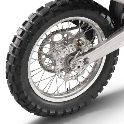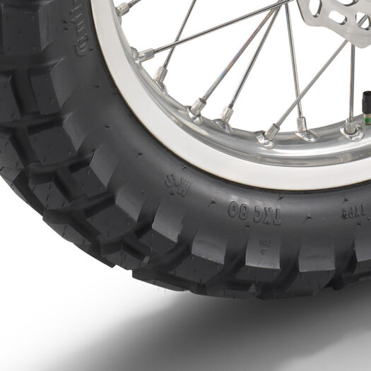 Všechna kola GASGAS Street Enduro jsou vybavena pneumatikami TKC 80 vpředu i vzadu, které jsou navrženy tak, aby byly odolné, přilnavé a poskytovaly výkon, který doplňuje naše osvědčená výkonná kola. Vzorky běhounu, které vzbuzují důvěru v širokém spektru terénu, jsou navrženy tak, aby maximalizovaly trakci i brzdný výkon.