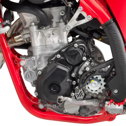 Jednoduše řečeno, jedná se o úžasný čtyřtaktní motor o objemu 250 ccm! Kompaktní a lehký motor je dokonale umístěn v rámu, aby se soustředila hmotnost, což přispívá k pocitu lehkosti při jízdě, takže můžete déle tlačit na pilu. Tento všestranný motor s velkým točivým momentem dole pro jezdce, kteří rádi řadí krátce, a zároveň schopností točit až do 14 000 otáček za minutu pro ty, kteří se rádi drží každého rychlostního stupně, je možná tím nejlepším na našem malém MC 250F.