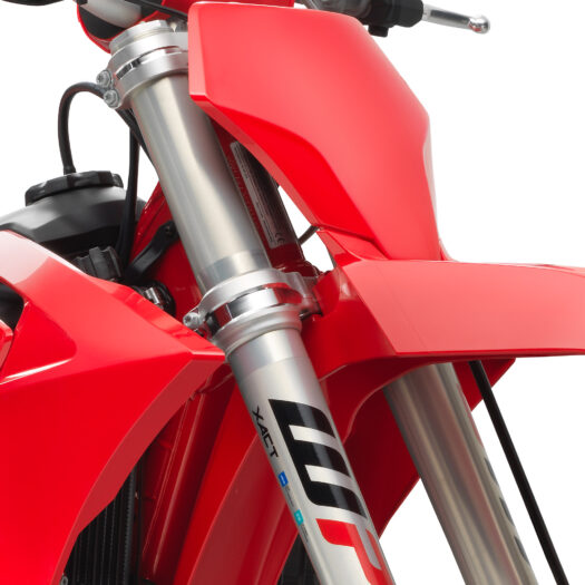 Aktualizované rámy všech motokrosových modelů GASGAS v roce 2025 znamenají nové nastavení 48mm vidlic WP XACT s děleným vzduchem. Zvenku je i nadále snadno nastavitelná rukou, uvnitř se o konzistentní tlumení stará vzduchová pružina s kapslí a tlaková olejová komora. Pomocí vzduchové pružiny lze snadno vytvořit individuální nastavení, protože toto kolo obsahuje vzduchovou pumpu pro nastavení tlaku. A pro ty, kteří rádi jezdí velké skoky, je ve vidlicích hydrostop, který pomáhá udržovat hybnost vpřed tím, že zbavuje každého těžkého dopadu.