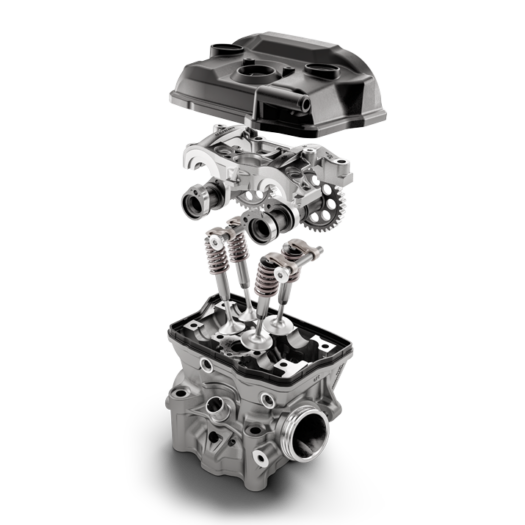 Do této hlavy válců s rozvodem DOHC se toho vešlo opravdu hodně. Je navržena tak, aby jednoduše poskytovala ten nejlepší možný výkon, velké titanové výfukové ventily a prstence potažené diamantovým karbonem znamenají, že můžete kroutit plynem, jak se vám zlíbí! MC 250F se volně otáčí až k hranici 14 000 otáček za minutu a cestou produkuje opravdu silný výkon. Věřte nám!