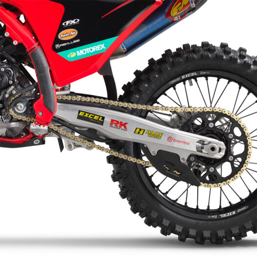 Abyste získali vzhled inspirovaný závodním týmem, je tato edice Factory Edition doplněna sadou závodních kol Factory Racing Wheel Set. Ve středu kol jsou náboje vyrobené CNC z hliníku a následně eloxované černou barvou. Poté jsou'přišroubovány k super pevným, černým ráfkům EXCEL Takasago s kvalitními paprsky a černými niply. Nejenže jsou příjemná na pohled, ale mají také opravdu nízkou hmotnost, což pomáhá minimalizovat neodpruženou hmotnost a zajistit lehčí ovladatelnost.