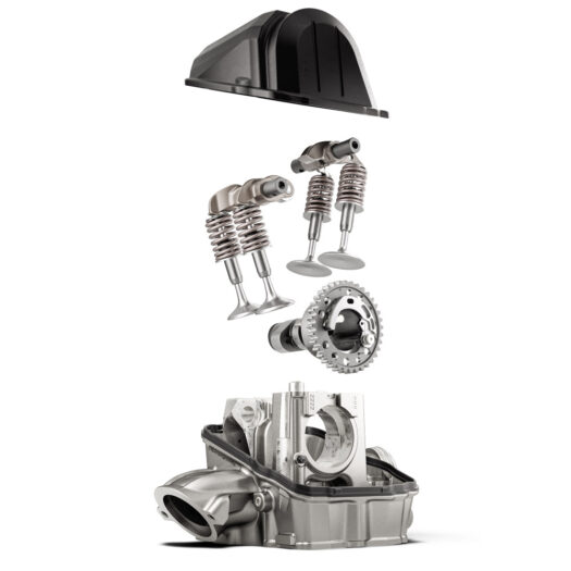 Do hlavy válce se toho vejde opravdu hodně! Lehká a kompaktní a s vačkovým hřídelem umístěným co nejblíže těžišti, je výkon na trati na nové úrovni, pokud jde o jízdní vlastnosti a celkovou ovladatelnost. Jemně děrovaný vačkový řetěz je navržen tak, aby snižoval tření, zatímco povrchová úprava Diamond Like Carbon (DLC) na vahadle zajišťuje, že vše běží ohromně hladce a zároveň zůstává mimořádně odolné.