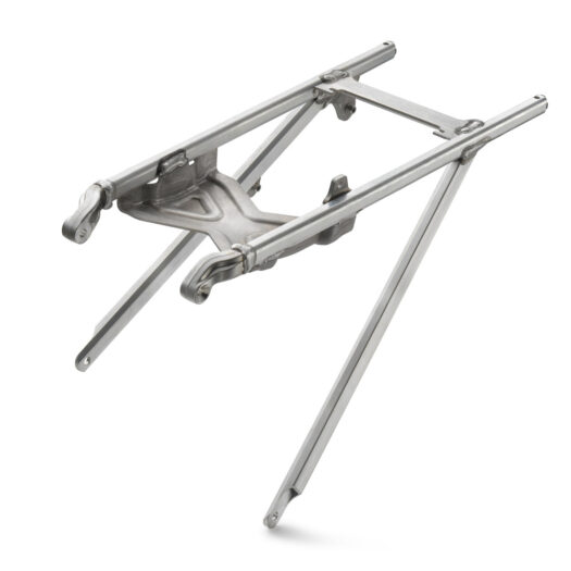 V loňském roce bylo při navrhování a výrobě našich rámů provedeno mnoho testů a vývoje, ale to neznamená, že naši inženýři nepracovali na dalším zdokonalování! Nové, přepracované uchycení motoru, dokončené černým eloxováním pro skutečný vzhled závodního týmu, zlepšuje pružnost podvozku a zároveň zachovává stabilitu kola v přímém směru. V oblasti uchycení tlumičů jsou v rámu nové výřezy, které spolu s mírně tenčí tloušťkou stěn v přední části podvozku snižují celkovou hmotnost. Díky všem těmto úpravám je nyní motocykl při nájezdu do zatáček mnohem stabilnější.