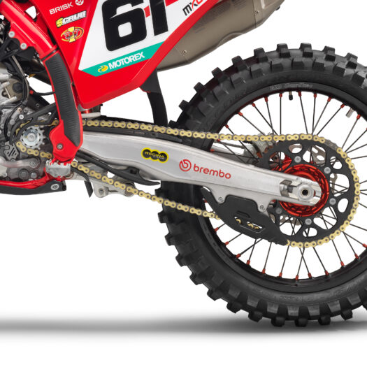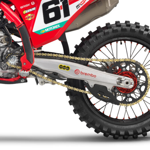 Mít superrychlou terénní motorku je fajn, ale i ti nejrychlejší jezdci musí čas od času zpomalit! Proto jsme vpředu namontovali závodně testovaný polopropustný přední kotouč, který zajišťuje neuvěřitelnou brzdnou sílu a zaručuje, že se v každé zatáčce trefíte. A pro zachování výkonu je chráněn továrním závodním chráničem brzdového kotouče z lehkého a pevného 2K uhlíkového kompozitu. Vzadu nový a silnější brzdový pedál zvyšuje odolnost, zatímco o chod se stará třmen Brembo a brzdový kotouč navržený exkluzivně pro GASGAS.