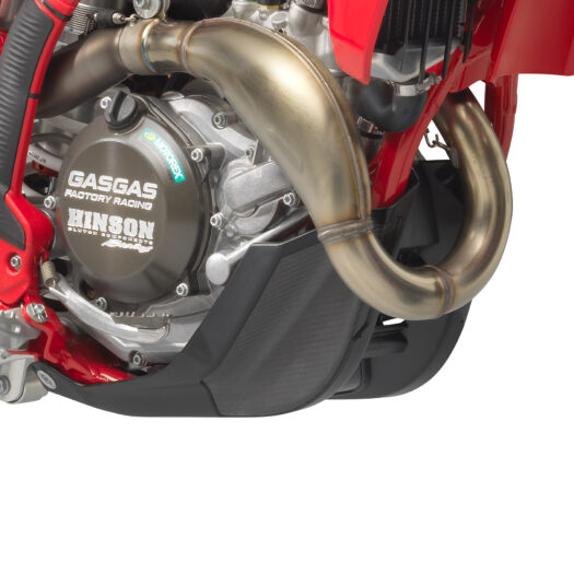 Factory Racing Skid Plate, který se úhledně vejde na spodní stranu motoru 450 ccm, nabízí neuvěřitelnou ochranu před kameny, kořeny a zabrání téměř všemu, co by mohlo poškodit motor na trati. Tento karbonem vyztužený ochranný štít motoru se táhne kolem obou stran motoru. Dobře chráněny jsou také kryty spojky a zapalování.