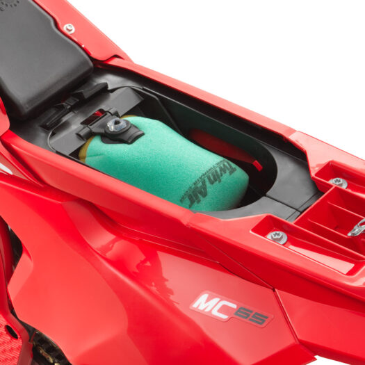 Náš úžasný malý MC 65 je místem, kde jízda na čistém motokrosovém motocyklu skutečně začíná. Díky hladce řadící manuální převodovce to může být první terénní motocykl, na kterém se děti naučí řadit a hlavně kdy to udělat, aby našly rychlou cestu po jakékoli trati. Kromě toho je MC 65 sestaven ze spousty dílů, které najdete na našich větších motokrosových motocyklech, ale samozřejmě zmenšených, aby se do nich vešly, což jen podtrhuje, jak vážně to myslíme s výrobou konkurenceschopného stroje o objemu 65 cm3. Mluvíme o hydraulické spojce, celočervené karoserii, pneumatikách MAXXIS, vzduchovém filtru TWIN AIR a odpružení WP. Ano, jsme z našeho MC 65 nadšení a víme, že vy budete také.