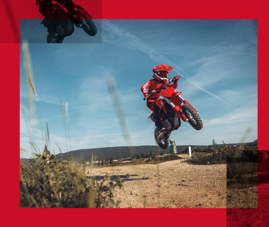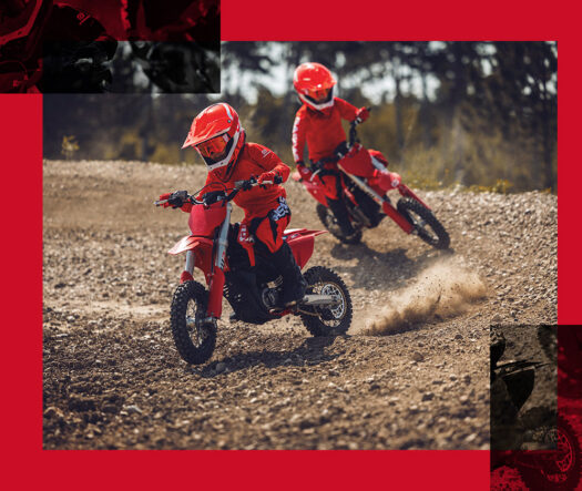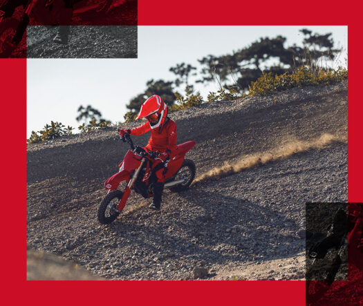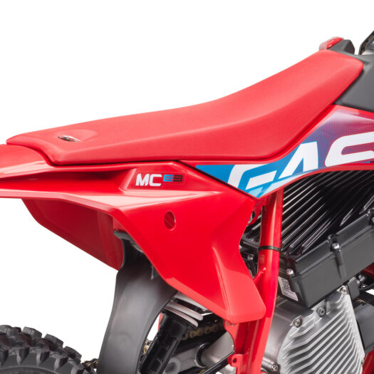 Vypadá to dobře, že? MC-E 3 je celý červený s modrým nádechem v grafice, který značí jeho elektrický pohon, a působí odvážně na trati i mimo ni. A aby to tak zůstalo, je grafika aplikována pomocí technologie in-mold, což znamená, že je nanesena pod povrch plastu, takže se nikdy nepoškrábe ani neodloupne. Jak skvělé to je?