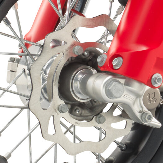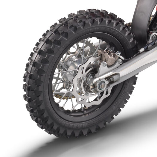 Hydraulické brzdy a zvlněné kotouče vpředu i vzadu znamenají, že MC-E 3 má pořádnou brzdnou sílu. A aby se mladí lidé připravili na život na dvou kolech, zadní brzda se ovládá ručně, což usnadňuje první kroky.