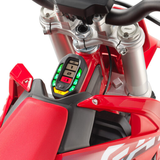 Někteří tomu říkají multifunkční přístroj, ale my mu říkáme řídicí centrum! V něm můžete přepínat a aktivovat jeden ze šesti předinstalovaných jízdních režimů podle schopností jezdce, od úplných začátečníků až po závodníky evropské juniorské série E-Motocross. Jedním pohledem také uvidíte zbývající úroveň nabití baterie.