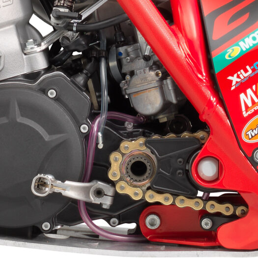 Vysoce kvalitní zlatý řetěz D.I.D. 520 DMS, který trialovým kolům TXT GP dodává vzhled inspirovaný továrními závody GASGAS, vypadá skvěle a nabízí působivou životnost. Naši profesionální jezdci tento řetěz testovali s vynikajícími výsledky, a právě proto jej najdete v celé řadě TXT GP.
