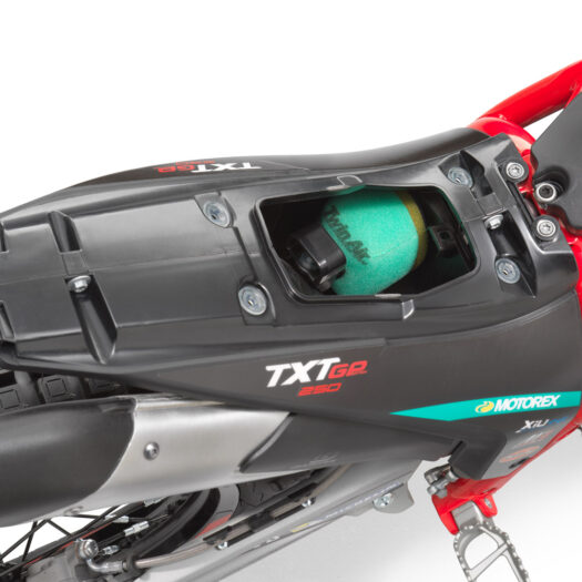 There aren't many bikes that have an airbox with a such a clever design, but ours do! Not only does it house the top-quality Twin Air filter, but the overall structure also plays a vital role in allowing our trial bikes to be super slim. With easy access, filter changes are super easy with just one bolt securing our filters.