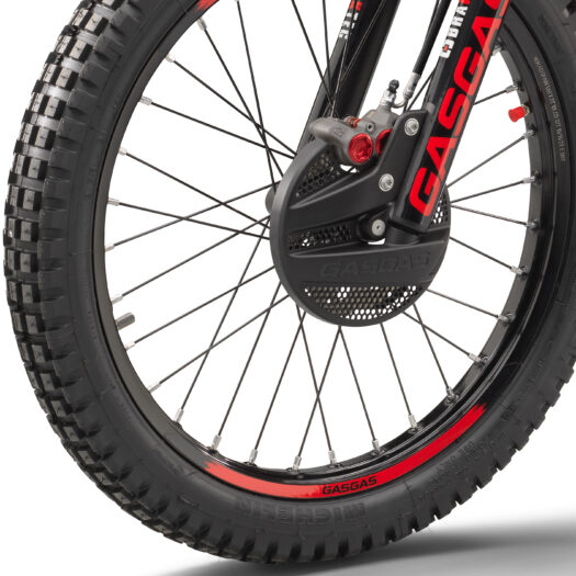 Mysleli jsme si, že kola našich trialových kol TXT GP už nelze vylepšit, ale naši inženýři je nějakým způsobem ještě vylepšili. Náboje jsou stále obráběny z jednotlivých kusů hliníku, ale pro rok 2025 byly mírně přepracovány, aby byly lehčí a pevnější. Stejně jako dříve jsou náboje eloxovány černou barvou s vyleptaným logem GASGAS, což zajišťuje kvalitní povrchovou úpravu. S vysoce pevnými ráfky MORAD, rovněž eloxovanými černou barvou, je spojují silné ocelové paprsky v zadním kole a lehké hliníkové paprsky v předním kole, což v konečném důsledku vytváří vážně robustní sadu kol. Při pohledu na věc a zároveň při zajištění maximálního přenosu výkonu na zadní kolo jsme'osadili černé hliníkové řetězové kolo a kvalitní zlatý řetěz od společnosti D.I.D.