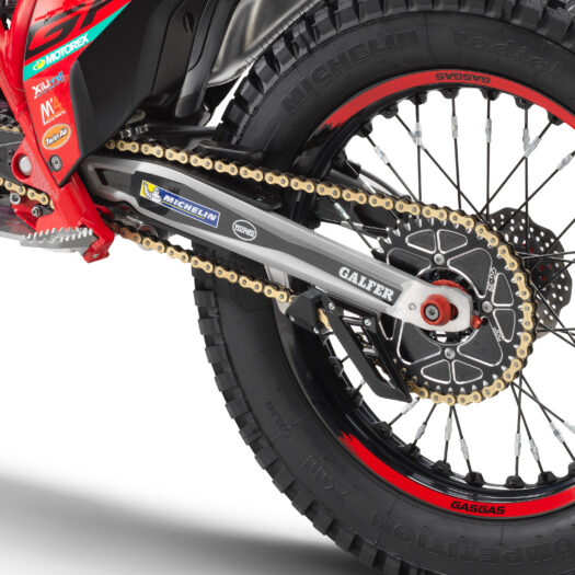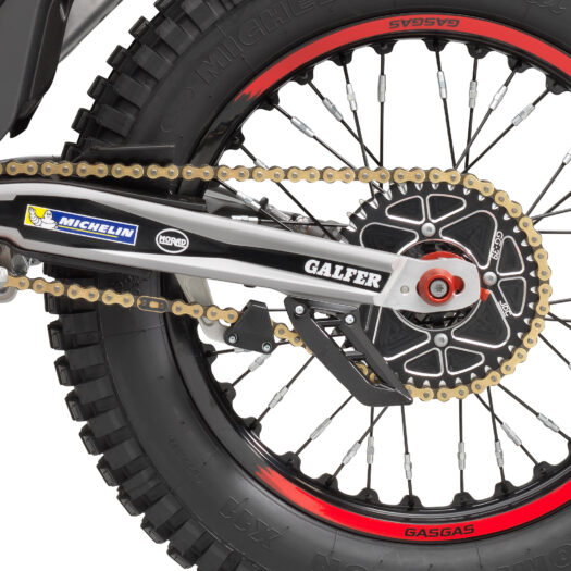 Pro rok 2025 jsme opět zvýšili brzdný výkon naší řady TXT GP a každý motocykl jsme vybavili stejnými kotouči GALFER, jaké používá GASGAS Factory Racing. Vpředu najdete 185mm plovoucí zvlněný kotouč se 4pístkovým třmenem BRAKTEC, zatímco vzadu je 150mm pevný zvlněný kotouč s 2pístkovým třmenem BRAKTEC. Zadní kotouč také splňuje předpisy FIM, takže toto kolo je vhodné pro jakýkoli závod. Instalace zadního kola je také velmi snadná, protože naše patentované magnetické brzdové destičky zůstávají od sebe, takže kotouč se prostě rovnou zasune.