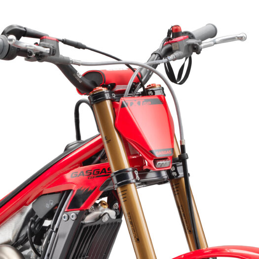 Na našich motocyklech GP jsou namontovány velmi speciální trojité třmeny. Jsou vyrobeny z hliníku speciálně pro modely TXT GP a snižují hmotnost, aniž by snižovaly pevnost nebo stabilitu. Jsou dokončené černým eloxováním, aby ladily s trialovými koly GASGAS Factory Racing!