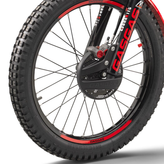Mysleli jsme si, že kola našich trialových kol TXT GP už nelze vylepšit, ale naši inženýři je nějakým způsobem ještě vylepšili. Náboje jsou stále obráběny z jednotlivých kusů hliníku, ale pro rok 2025 byly mírně přepracovány, aby byly lehčí a pevnější. Stejně jako dříve jsou náboje eloxovány černou barvou s vyleptaným logem GASGAS, což zajišťuje kvalitní povrchovou úpravu. S vysoce pevnými ráfky MORAD, rovněž eloxovanými černou barvou, je spojují silné ocelové paprsky v zadním kole a lehké hliníkové paprsky v předním kole, což v konečném důsledku vytváří vážně robustní sadu kol. Při pohledu na věc a zároveň při zajištění maximálního přenosu výkonu na zadní kolo jsme'osadili černé hliníkové řetězové kolo a kvalitní zlatý řetěz od společnosti D.I.D.