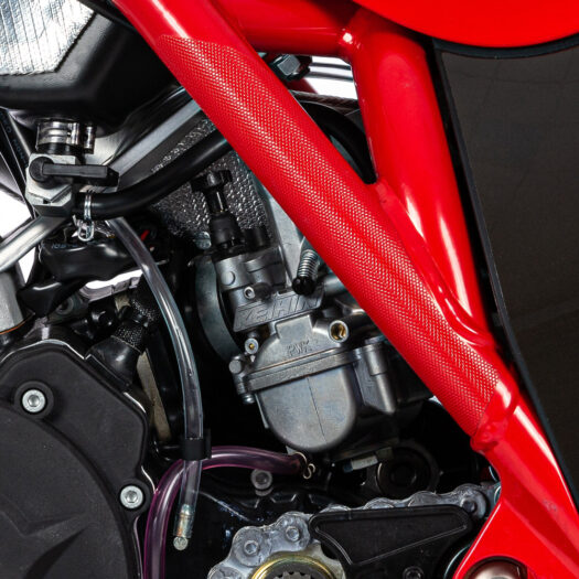 Kompaktní palivová nádrž o objemu 2,4 litru, která byla přepracována pro lepší ergonomii a zároveň dokonale zapadá do rámu a karoserie, je na svém místě uchycena pouze jedním šroubem, což zajišťuje rychlou demontáž a rychlou opětovnou montáž.