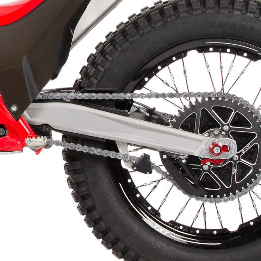Pevné, ale se správnou mírou pružnosti. Takto vyrábíme naše trialové rámy z trubkové chrom-molybdenové oceli 25CrMo4 o tloušťce 1,5 mm, která zajišťuje výjimečnou úroveň zpětné vazby jezdce! Při použití pokročilých výrobních procesů je každý z nich vyroben pomocí laserového řezání a robotického svařování. Konečným výsledkem jsou rámy, které jsou neuvěřitelně odolné a zajišťují skutečný trialový výkon. Všechny rámy váží pouhých 6 kg a jsou opatřeny robustní červenou práškovou barvou GASGAS. Boční závěsy z kovaného hliníku spojují zónu hlavy řízení s velkou kluznou deskou, která lépe chrání motor, spodní lišty rámu a závěs.