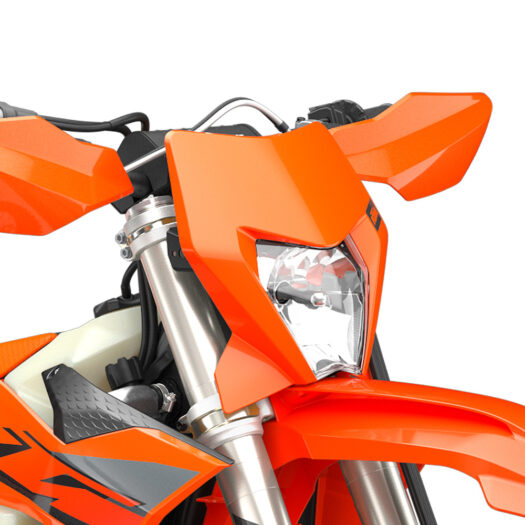 Motocykly KTM EXC jsou vybaveny LED světlometem a maskou. Samotná maska nabízí ochranu brýlí vidlice proti hromadění nečistot a nechybí ani gumové pásky pro pevné uchycení. Co je však ještě důležitější – LED světlomet má solidní svítivost. Jízda ve tmě tak bude zcela novým zážitkem.