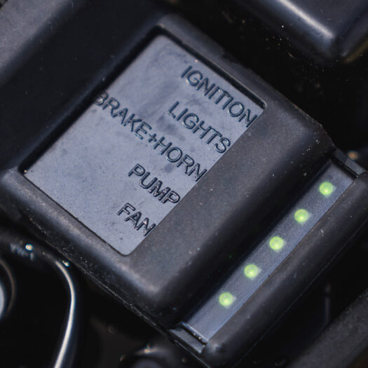 Offroad Control Unit neboli OCU umístěná pod sedlem nahrazuje všechny elektronické pojistky a relátka. Všechny výstupy jsou nepřetržitě řízeny v závislosti na signálech z regulátoru napětí a jednotky ECU. V případě výskytu nadproudu se výstupy dokážou samostatně deaktivovat. To umožňuje snadnou detekci chyb, protože stav každého výstupu je indikován červenou nebo zelenou LED kontrolkou. Díky tomu je diagnostika elektrických závad přímo na trailu velmi snadná. Stačí zvednout sedlo a máš jasno, aniž by ses musel hrabat v pojistkách.