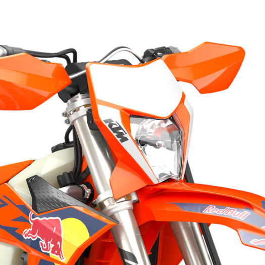 Motocykly KTM EXC 2025 jsou vybaveny LED světlometem a maskou. Samotná maska nabízí lepší ochranu brýlí vidlice proti hromadění nečistot a nechybí ani gumové pásky pro pevné uchycení. Co je však ještě důležitější – LED světlomet má solidní svítivost. Jízda ve tmě tak bude zcela novým zážitkem.