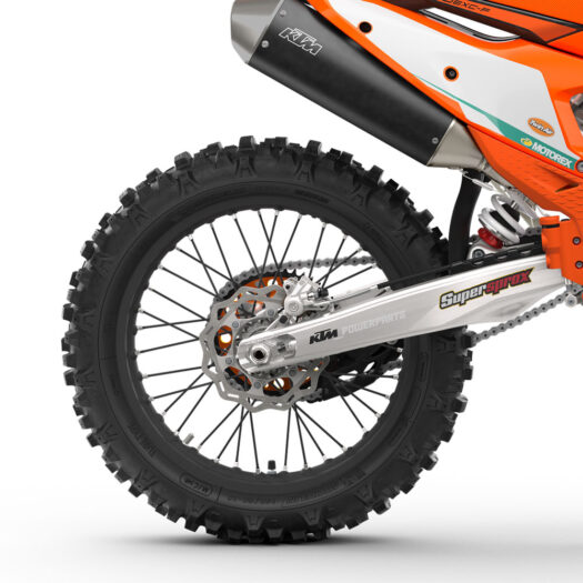 Motocykl KTM 350 EXC-F CHAMPION EDITION je vybaven pneumatikami MICHELIN Enduro, které zajišťují výjimečnou trakci díky inovativnímu designu dezénu, který se ideálně přizpůsobí písčitému, travnatému nebo blátivému povrchu stejně jako tvrdším terénním tratím.