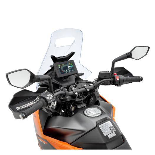 Se špičkovým TFT displejem s úhlopříčkou 5′ budeš mít dokonalý přehled o všem podstatném. Každá funkce se zobrazuje pomocí přehledné infografiky motocyklu, aby jezdec přesně věděl, kde najde příslušné nastavení. Displej z lepeného minerálního skla zajišťuje optimální odolnost vůči poškrábání i nechtěným odleskům. Volitelná jednotka Connectivity Unit umožňuje propojení mezi aplikací KTMconnect a TFT displejem motocyklu prostřednictvím Bluetooth, na kterém lze zobrazovat podrobné pokyny navigace Turn-by-Turn+, hudbu, příchozí hovory nebo získat rychlý přístup k asistenční službě KTM.