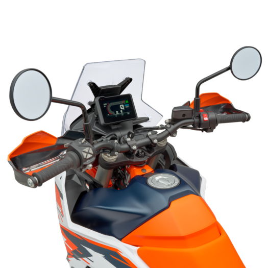 Se špičkovým TFT displejem s úhlopříčkou 5′ budeš mít dokonalý přehled o všem podstatném. Každá funkce se zobrazuje pomocí přehledné infografiky motocyklu, aby jezdec přesně věděl, kde najde příslušné nastavení. Displej z lepeného minerálního skla zajišťuje optimální odolnost vůči poškrábání i nechtěným odleskům. Volitelná jednotka Connectivity Unit umožňuje propojení mezi aplikací KTMconnect a TFT displejem motocyklu prostřednictvím Bluetooth, na kterém lze zobrazovat podrobné pokyny navigace Turn-by-Turn+, hudbu, příchozí hovory nebo získat rychlý přístup k asistenční službě KTM.